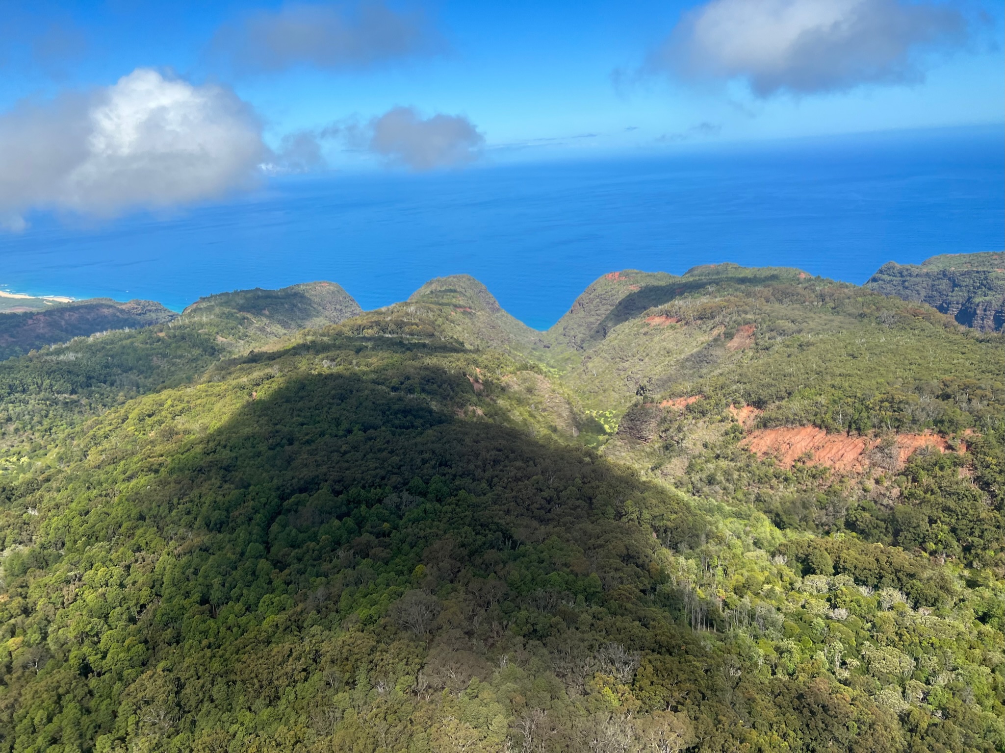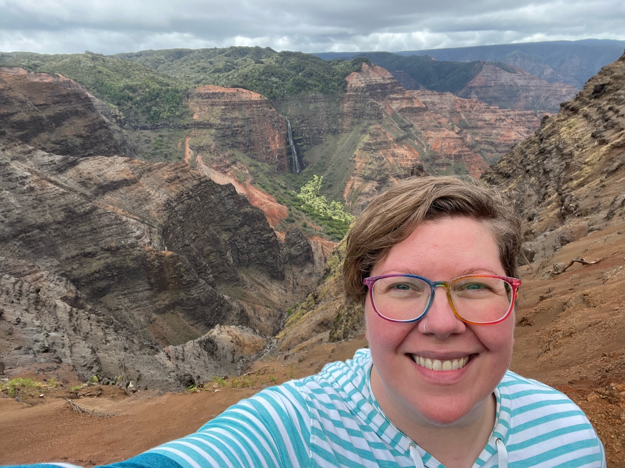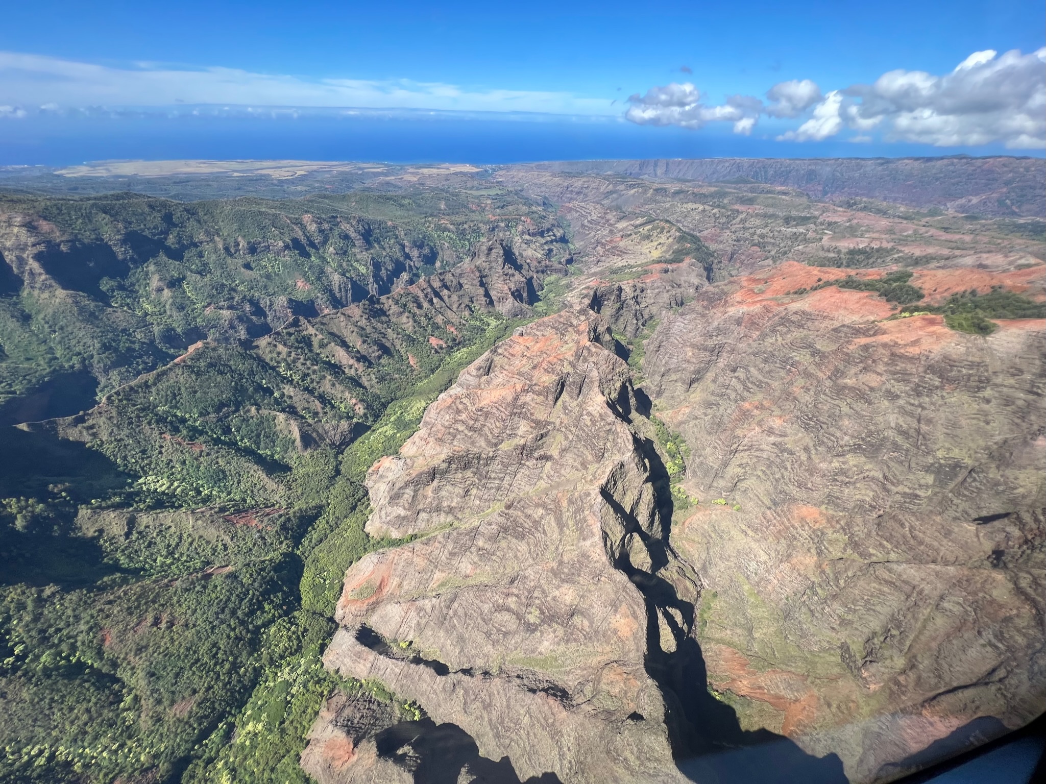 I drove all over Kauai, we did an ATV tour and saw places where Jurassic Park and Raiders of the Lost Ark were filmed and swam in a waterfall. I saw ancient Hawaiian temples (“heaiu”) and gorgeous beaches. I went to a coffee plantation and tasted a flight of coffee and I drove along the rim of “the Grand Canyon of the Pacific”. I hiked to the rim of the canyon on a nature trail and hiked to a cave near the ocean. I walked across a swinging rope bridge and saw a ditch built with a unique architecture before the 14th century to bring water from a river to the taro fields. I went to a luau. I took a helicopter tour of the island, saw a bunch of waterfalls including the one they filmed for the helicopter landing scene of Jurassic Park, and flew into a volcanic crater. I drank fresh fruit juice from a roadside stand at a waterfall, had bubble tea, ate Dole whip, and had a gyro and falafel from a food truck in Hanalei Town.