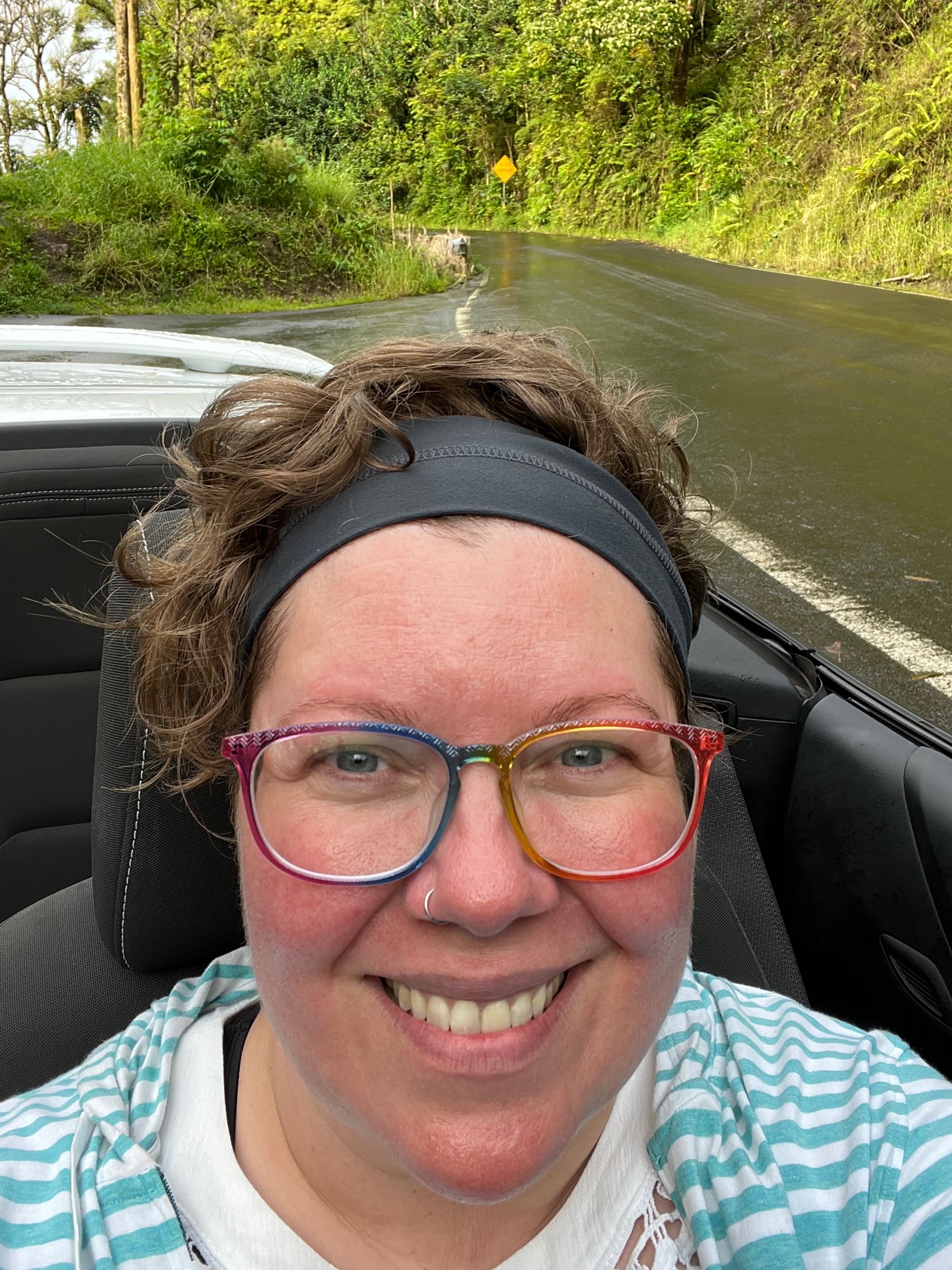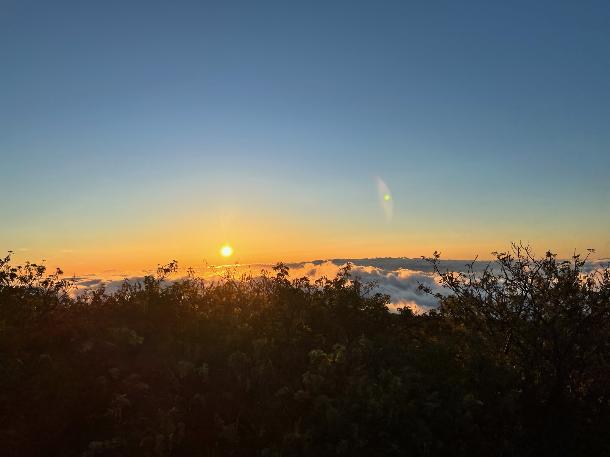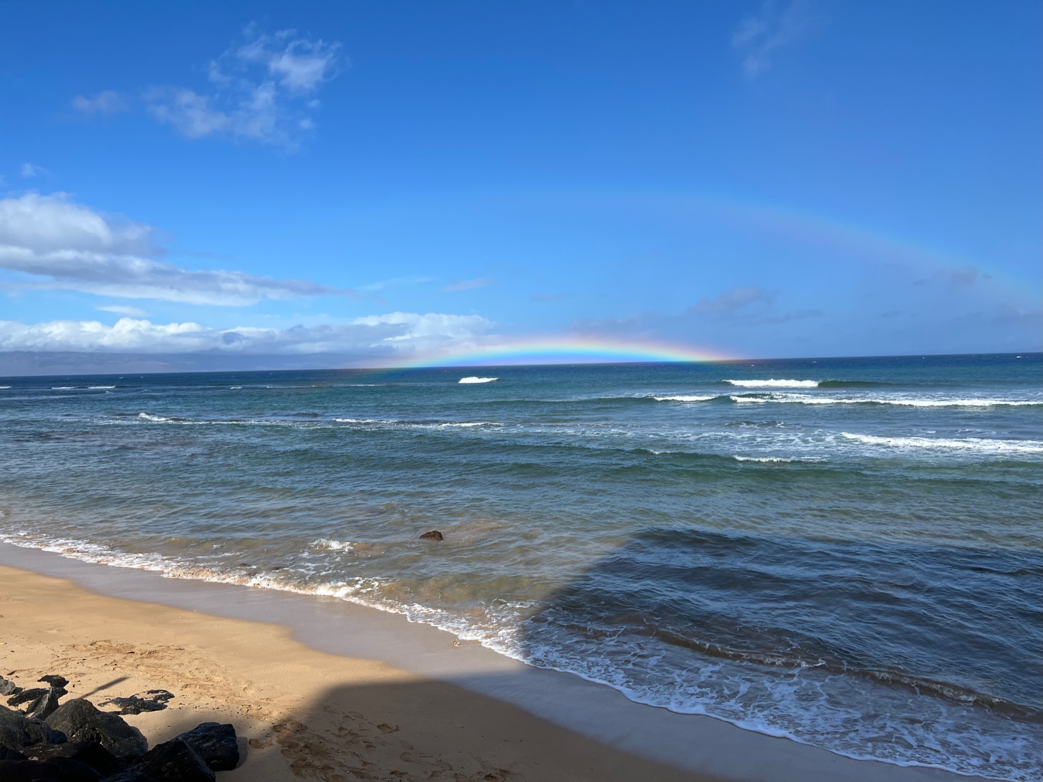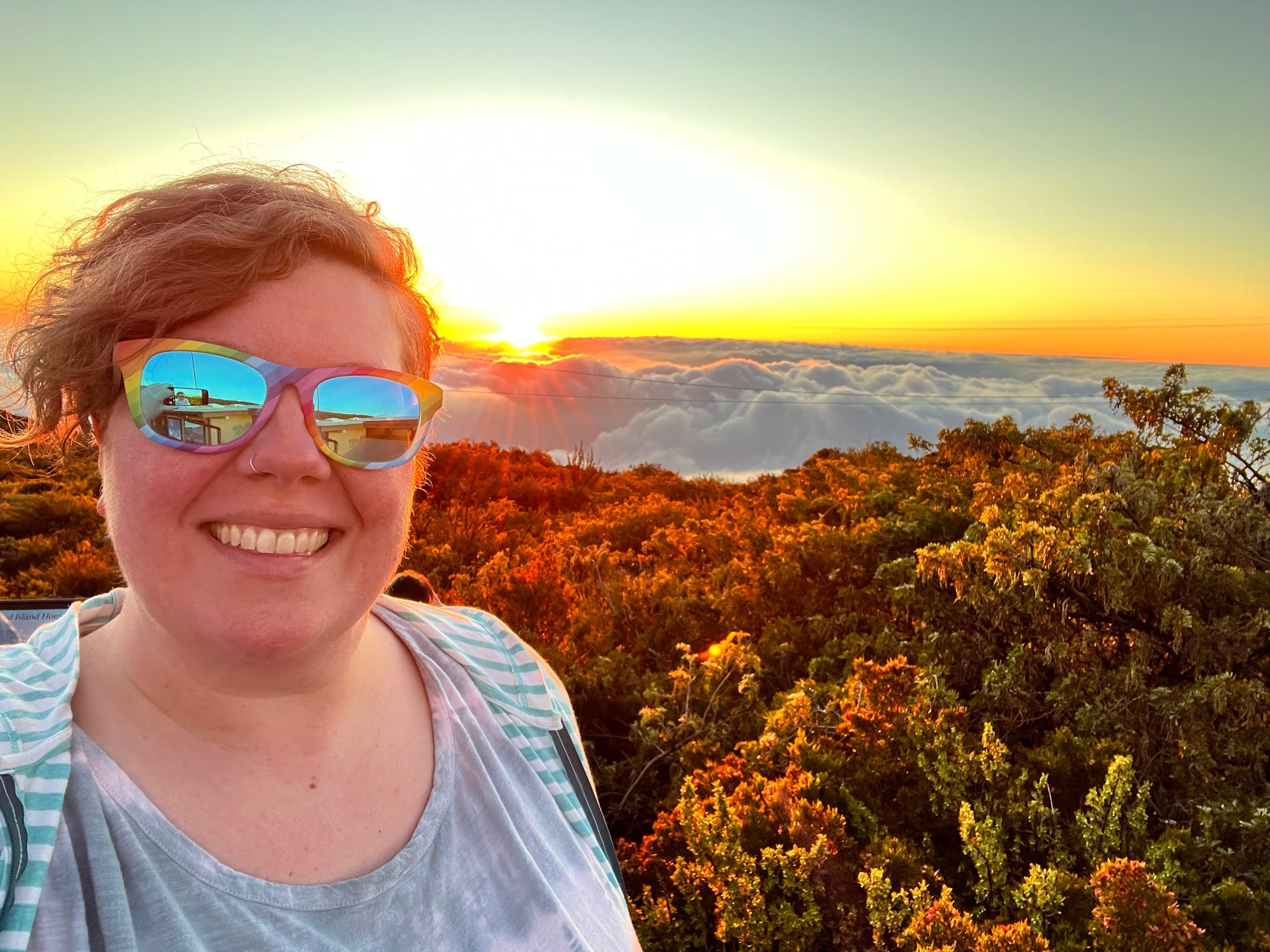 Maui was also gorgeous but busier. We had shave ice (twice!) and ate at Star Noodle. I got a jagua henna tattoo. We watched the sunset from the beach and from 10,000 feet up on a volcano. I attempted to drive the back road to Hana but had to turn around and go the “classic” way because Pi’ilani Highway was washed out. I went to a black sand beach where the waves made the rocks rumble like nothing I’ve ever heard before on their way out. I drove through a dry stream bed and a lava gulch. I drove the 620 curves and 59 bridges of the Hana Highway in a convertible. I saw sweeping valleys, steep cliffs, and loads and loads of waterfalls. I climbed into a lava tube and got to see rainbow eucalyptus trees. I ate amazing Thai food from a roadside stand. We drove to the summit of Haleakalā and stargazed after the sunset. We saw rainbows from our hotel suite.